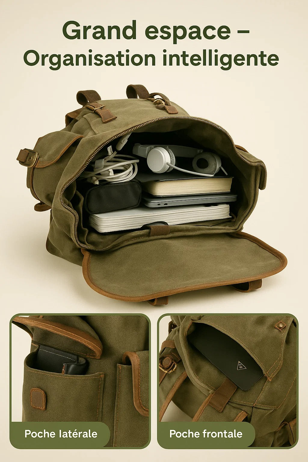 Confectionné en matériaux premium, ce sac dévoile une architecture intérieure ingénieuse avec de multiples compartiments, offrant une organisation intuitive et élégante.